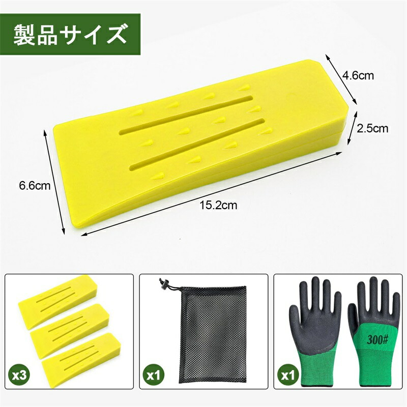 伐採用 くさび 林業用 クサビ 3個セ レッド ブルー イエロー オレンジ くさび*3+手袋+収納袋 くさび*2