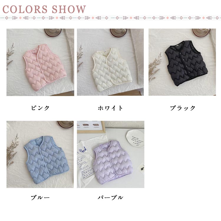 ダウン風ベスト あたたかい ジュニア キッズ ベビー マタニティ 早い者勝ち ホワイト ブラック ブルー ピンク パープル 90cm 100cm 110cm 120cm 130cm 140cm 150cm