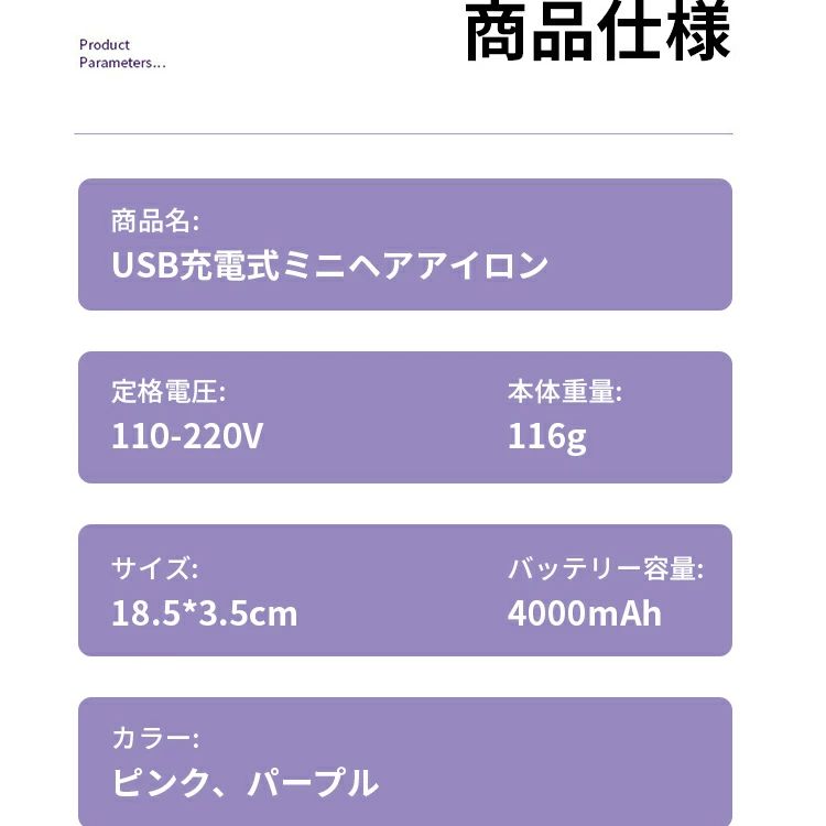 コードレスストレートアイロンはあらゆる操作にケーブルが邪魔にならず、どこでも使えます。最軽量・コンパクトなデザイン、さらに30・40分間連続使用可能なので、持ち運びに便利なアイテム!デート/ショッピング/客先訪問すべて楽に対応可能です。