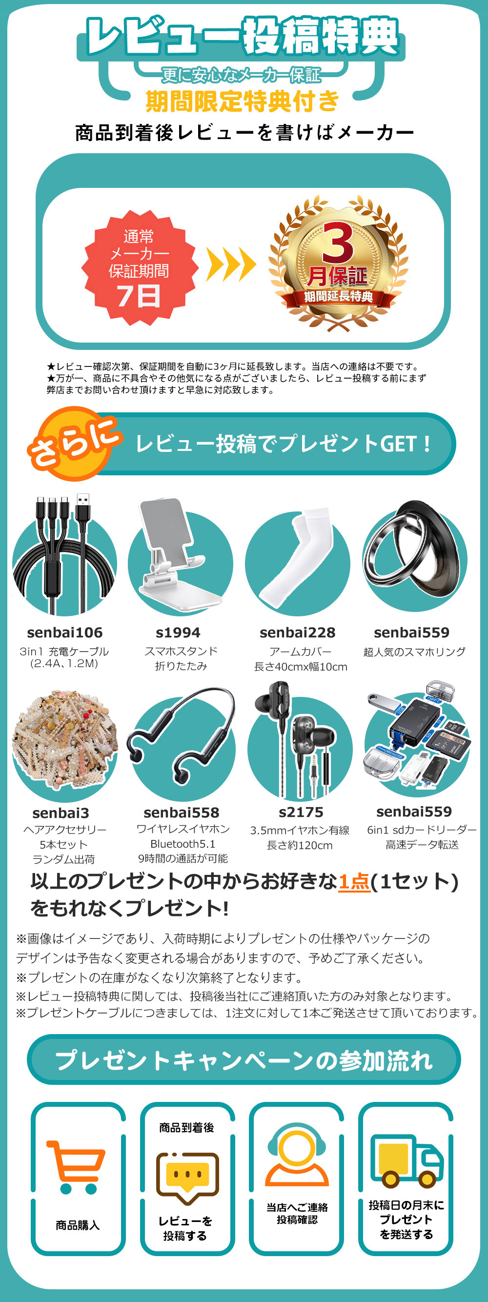 ※万全のアフターサポート:万が一製品に初期不良があった場合、迅速に交換もしくは返品/返金の対応を承らせていただきます。また、ご不明な点やお気付きの点がございましたら、お気軽にご連絡、ご相談ください。
