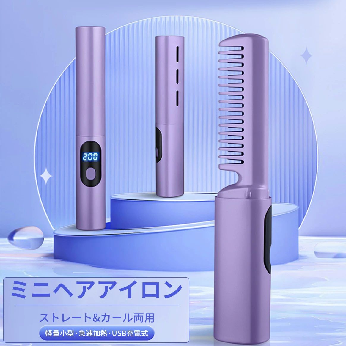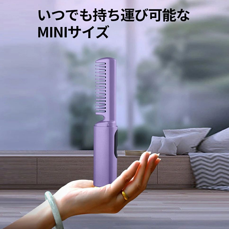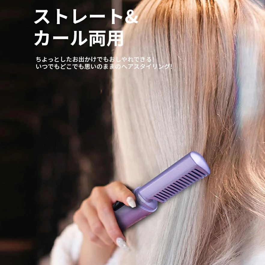 】ヒートブラシ コードレス ブラシヘア パープル ピンク