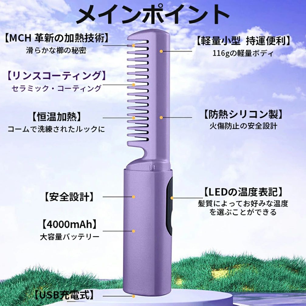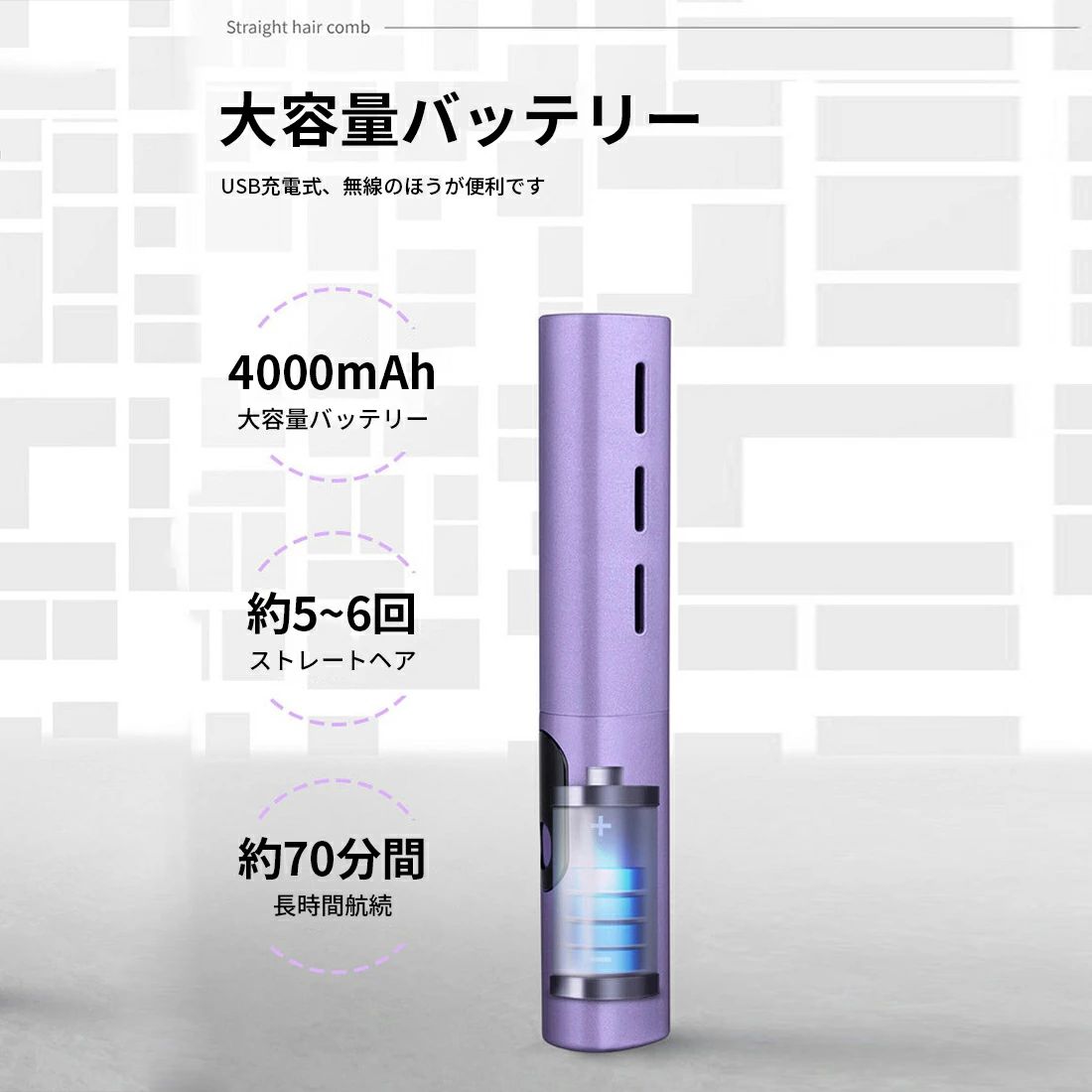 】ヒートブラシ コードレス ブラシヘアアイロン ストレートブラシ カール 両用可能 4000mAh大容量バッテリー ヘアアイロンブラシ 蓋あり クイックスタイリング USB充電式 温度3段 ポータブル