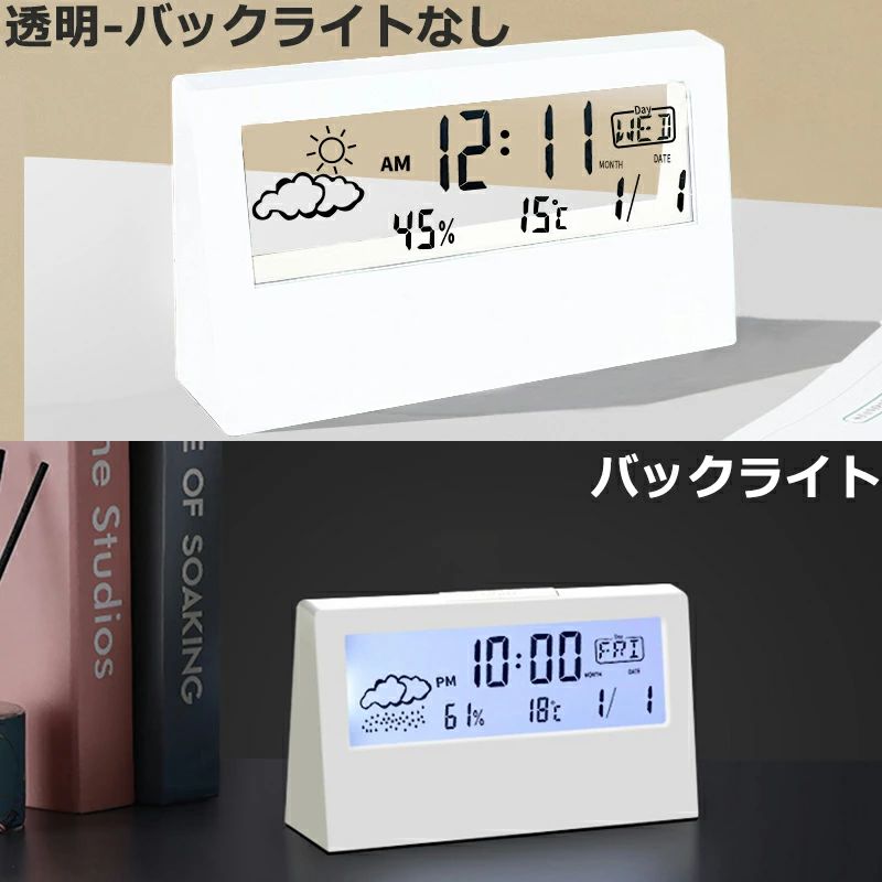 デジタルクロック 置き時計 デジタル 透明-バックライトなし バックライト