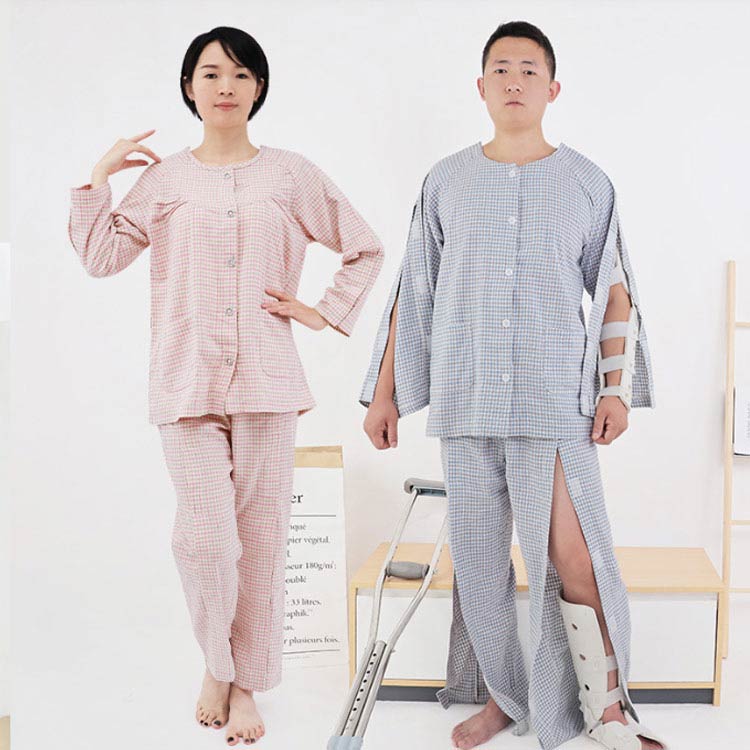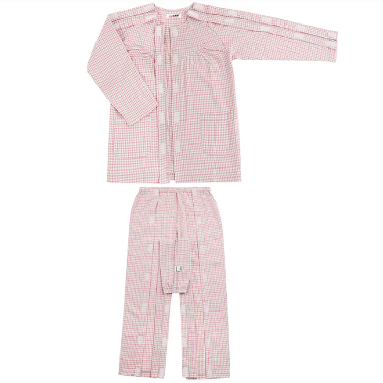 レディース 介護服 オムツ交換 全開 男性-ブルー 女性-ピンク M L XL 2XL