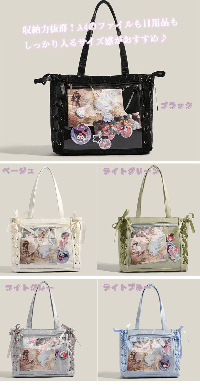 痛バッグ 痛バ 痛バック トート トー バッグ レディースバッグ トートバッグ 早い者勝ち ブラック ベージュ ライトグレー ライトグリーン ライトブルー