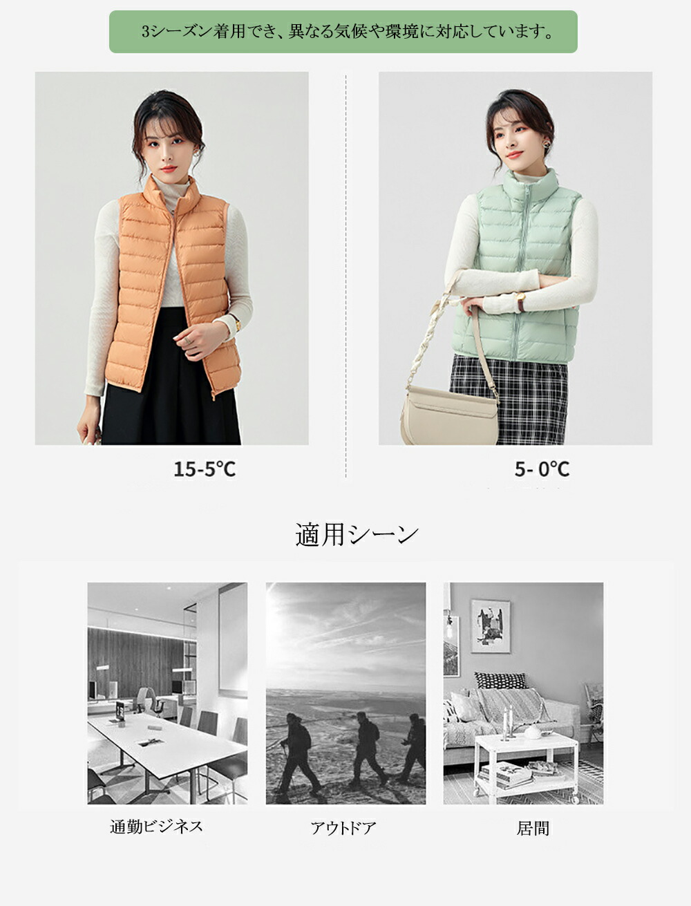 【撥水性・透湿性・防風性】 このダウンジャケット表面は程度よい光沢感があり、通勤、通学、登山、ゴルフ、キャンプ、スキーなどのアウトドア活動での雨風も防げ快適な着心地をキープしてくれます。