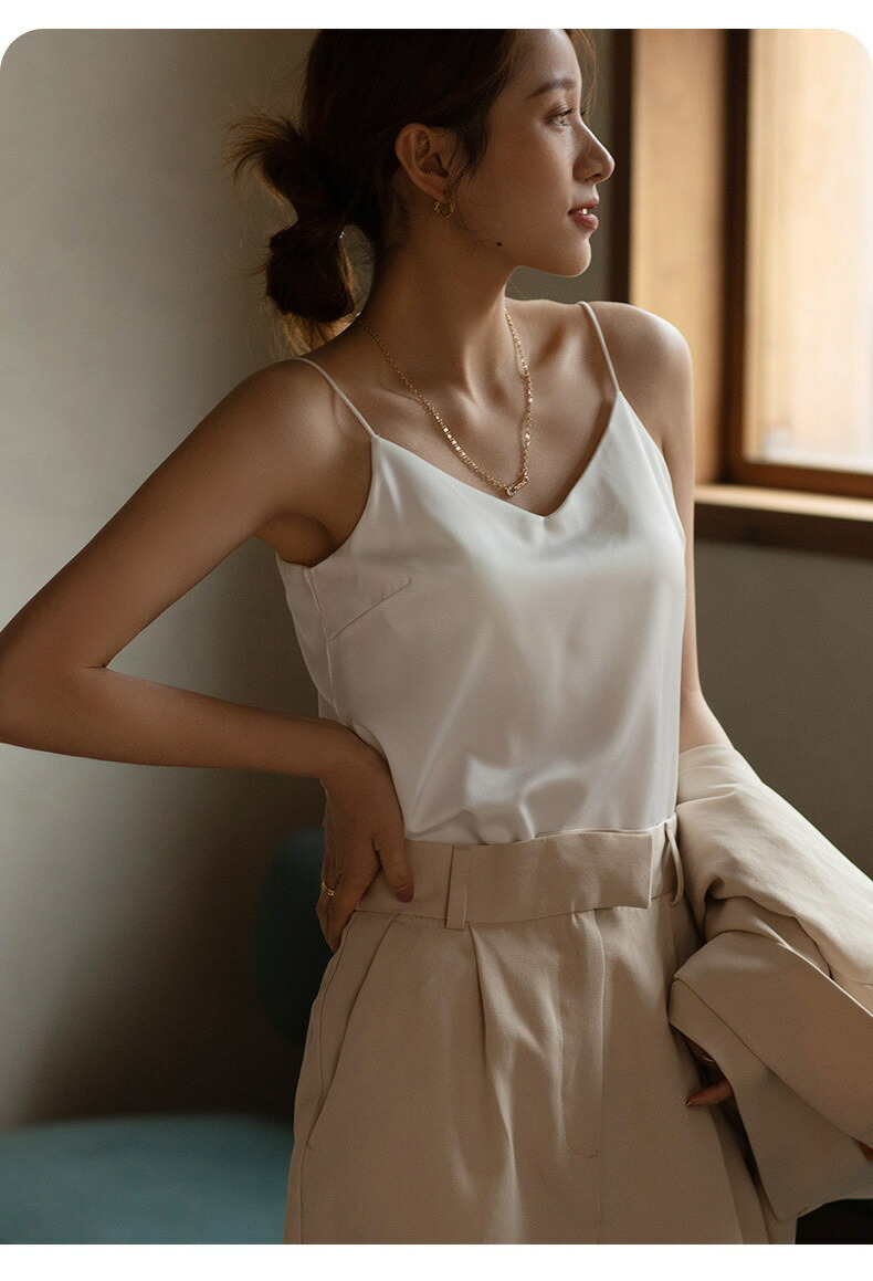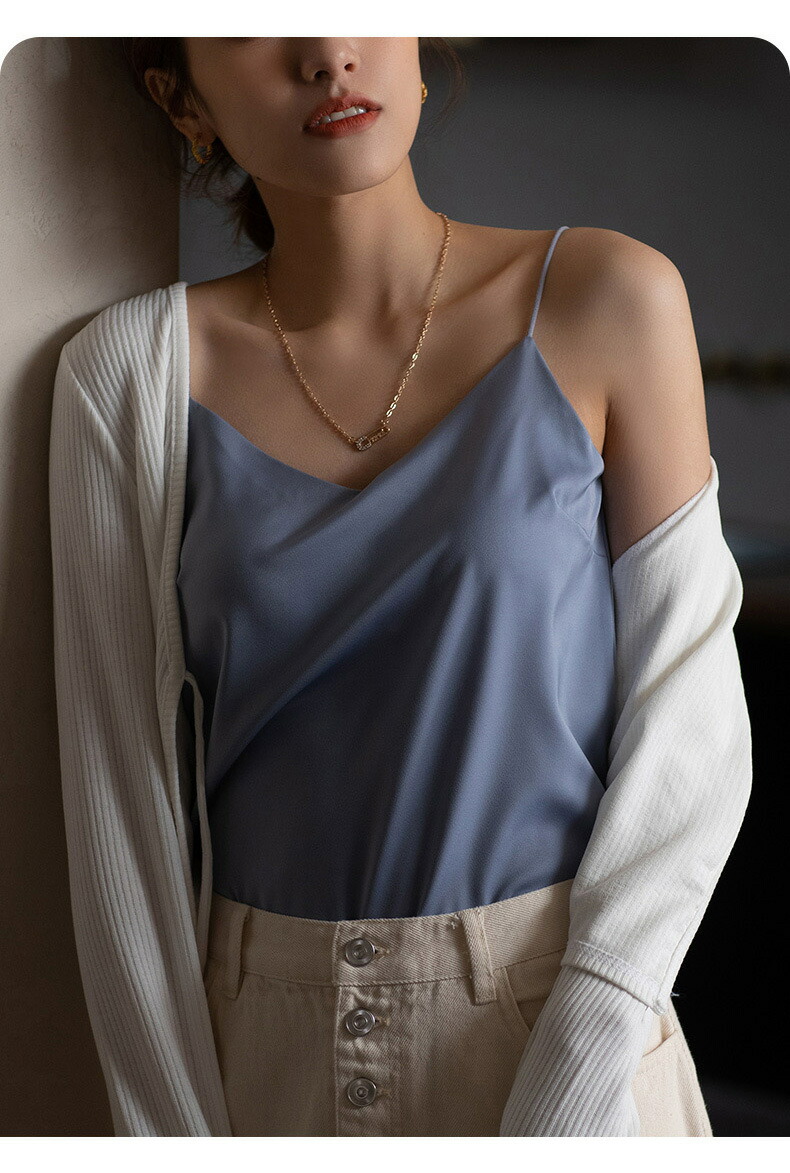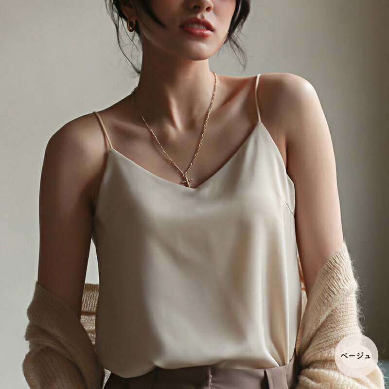 キャミソール Vネック サテン 下着 レディースファッション 特集 ホワイト ベージュ ブルー ブラック グレイグリーン S(35-45kg) M(45-52kg) L(52-60kg) XL(60-65kg) XXL(65-70kg)