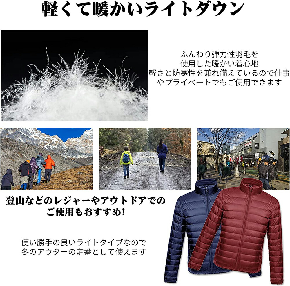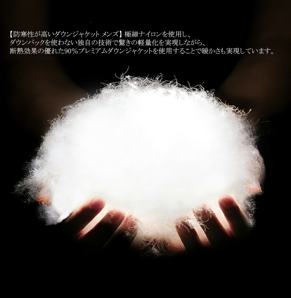 【防寒性が高いダウンジャケット メンズ】 極細ナイロンを使用し、 ダウンパックを使わない独自の技術で驚きの軽量化を実現しながら、 断熱効果の優れた90%プレミアムダウンジャケットを使用することで暖かさも実現しています。