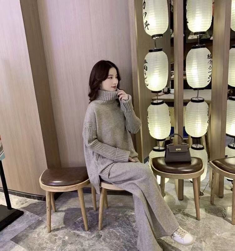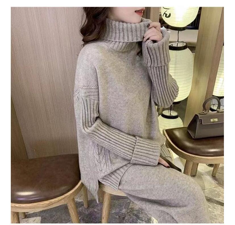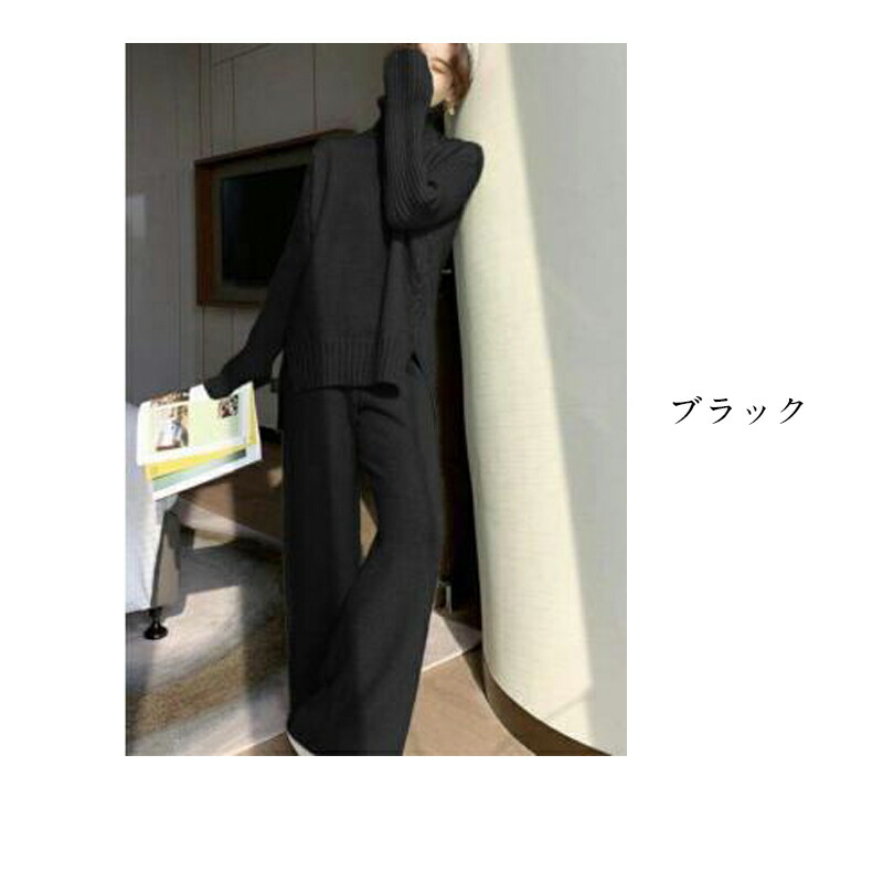 ニットセットアップ レディース セーター きれいめ ニットセーター 40代 秋冬 ニットスカート パンツ 長袖 ニット スパンツ セットアップ 無地 ロング丈 韓国風 カジュアル 2点 上品