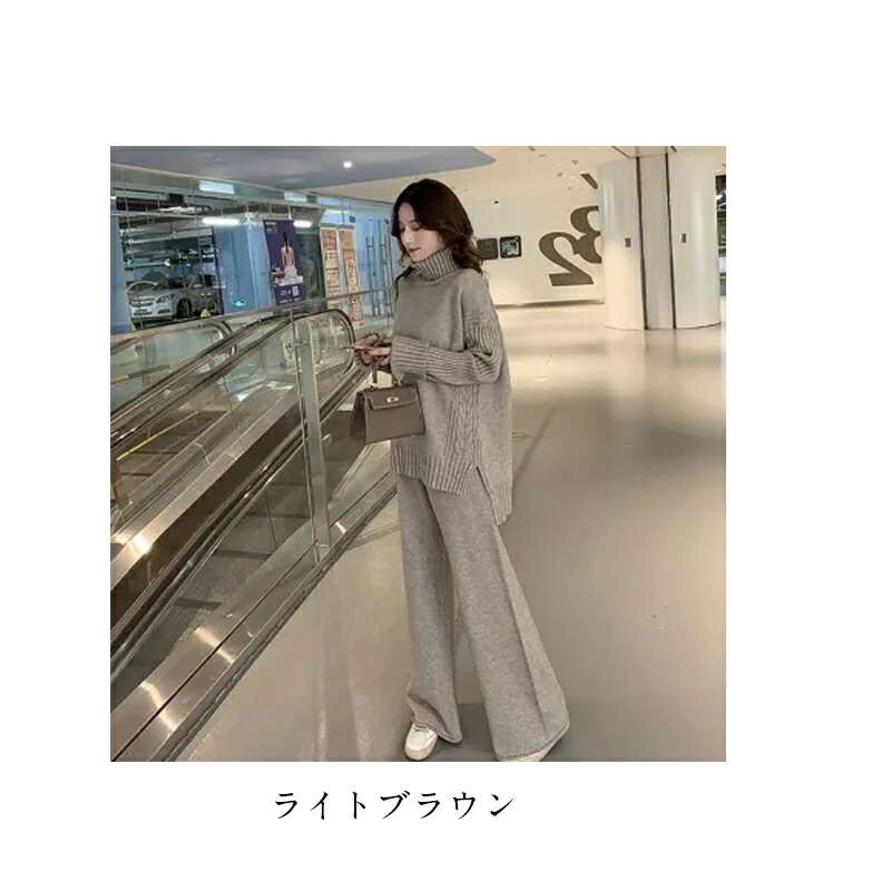 ニットセットアップ レディース セータ レディースファッション 特集 ライトブラウン ブラック グレー ピンク ベージュ S M L XL