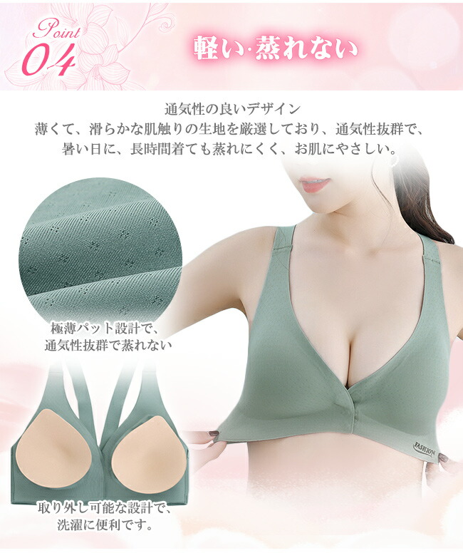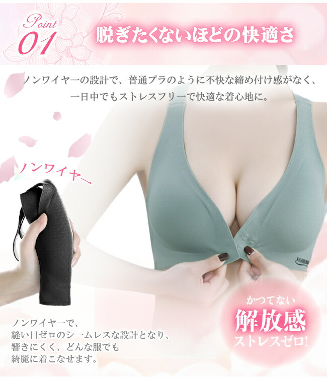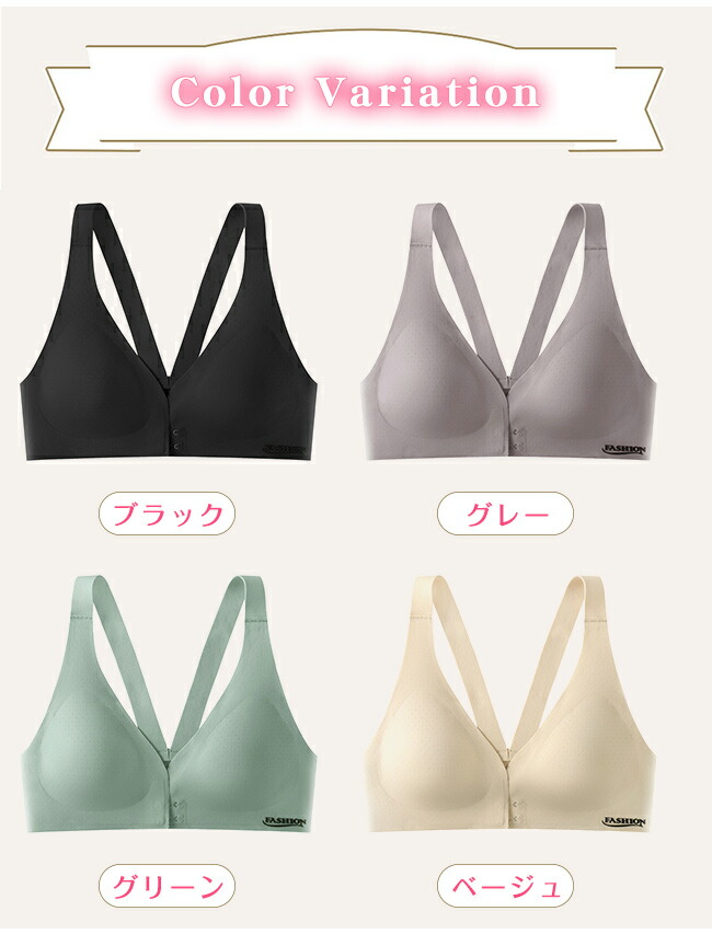 ブラジャー フロントホック 24時間使 インナー 下着 ナイトウエア 通販 ブラック グレー ベージュ グリーン M L XL XXL