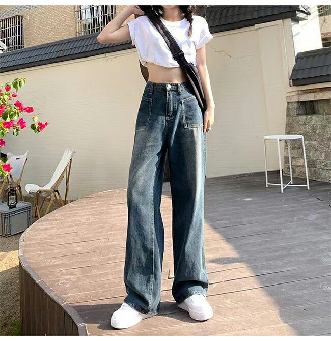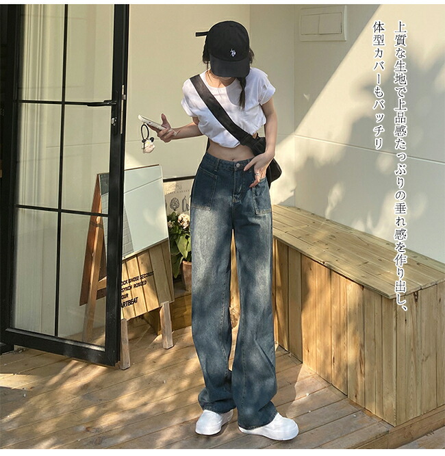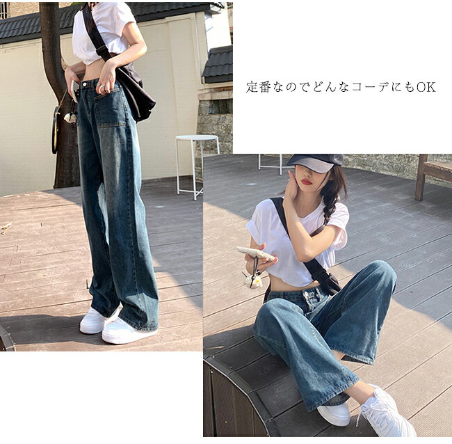 デニムパンツ ワイドパンツ 脚長効果 レディースファッション 超目玉商品 S M L XL 2XL