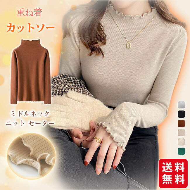 ニット セーター 重ね着 カットソー トップス ニット セーター セーター 豊富 ブラック ホワイト カーキ ベージュ オレンジ グリーン