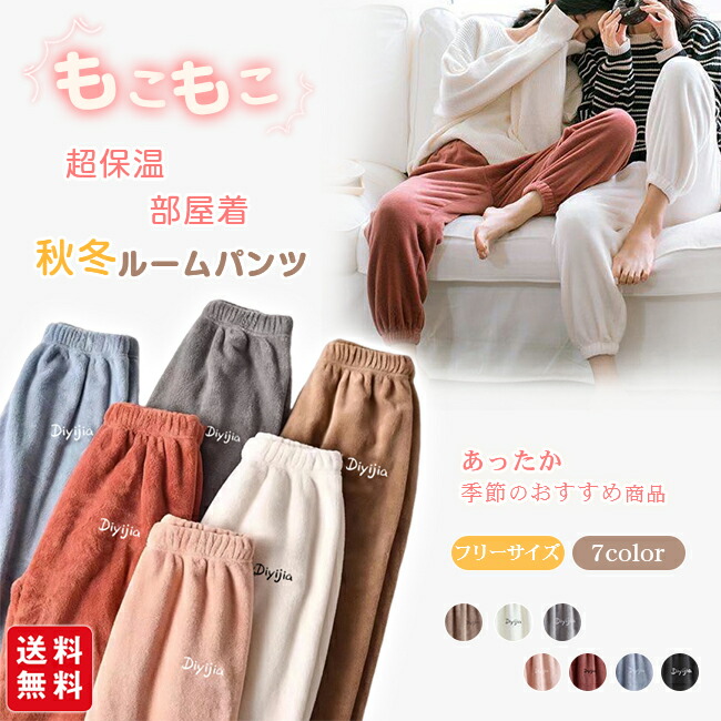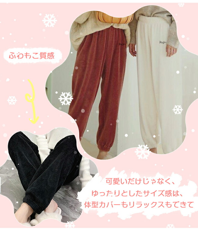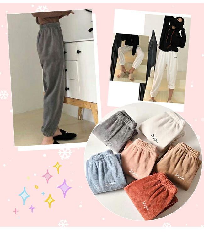 秋冬ルームパンツ ルームウェア 起毛 ボトムス パンツ 超目玉商品 ブラウン ホワイト グレー ピンク レッド ブルー ブラック