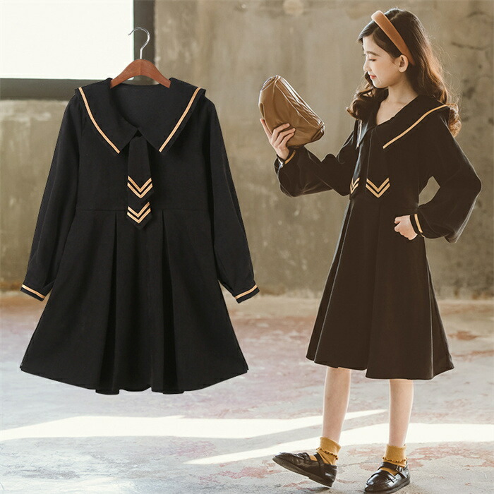キッズ ワンピース 秋 春 黒 子供服 キッズ ベビー マタニティ 豊富な品揃え 110cm 120cm 130cm 140cm