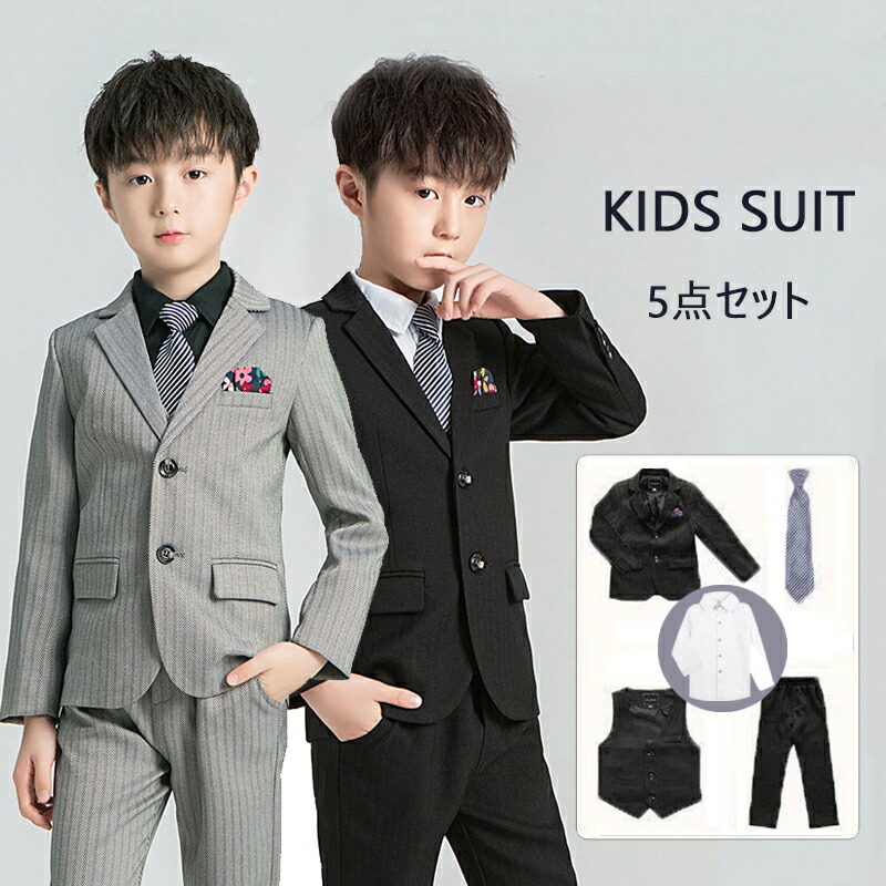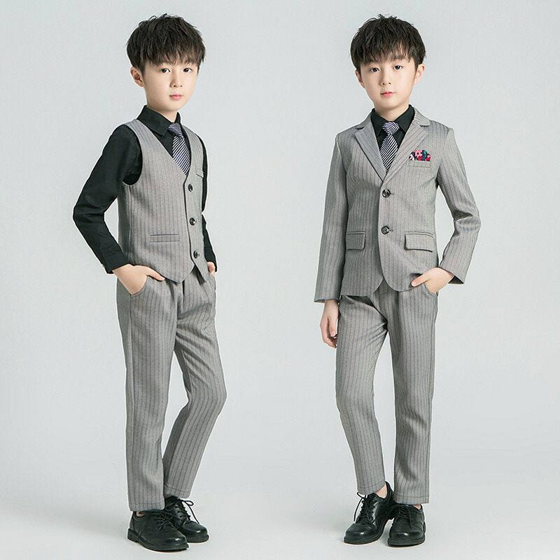 卒業式 小学校 スーツ 4点セット 5 メンズファッション 人気 ブラック グレー 90cm 100cm 110cm 120cm 130cm 140cm 150cm 160cm 170cm
