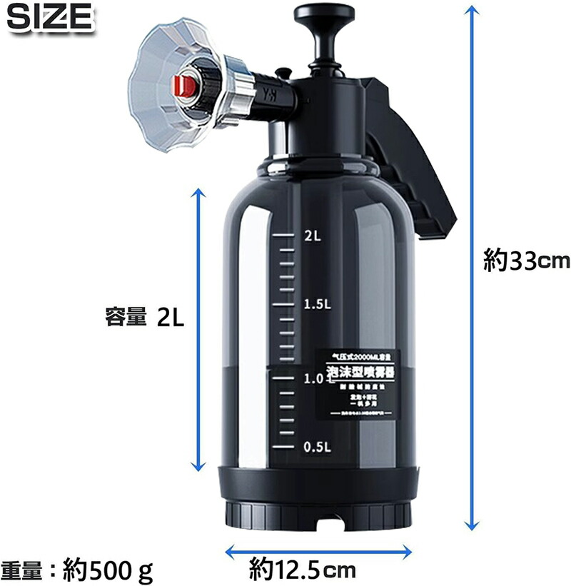 2L 蓄圧式洗車クリーナー 発泡スプレ