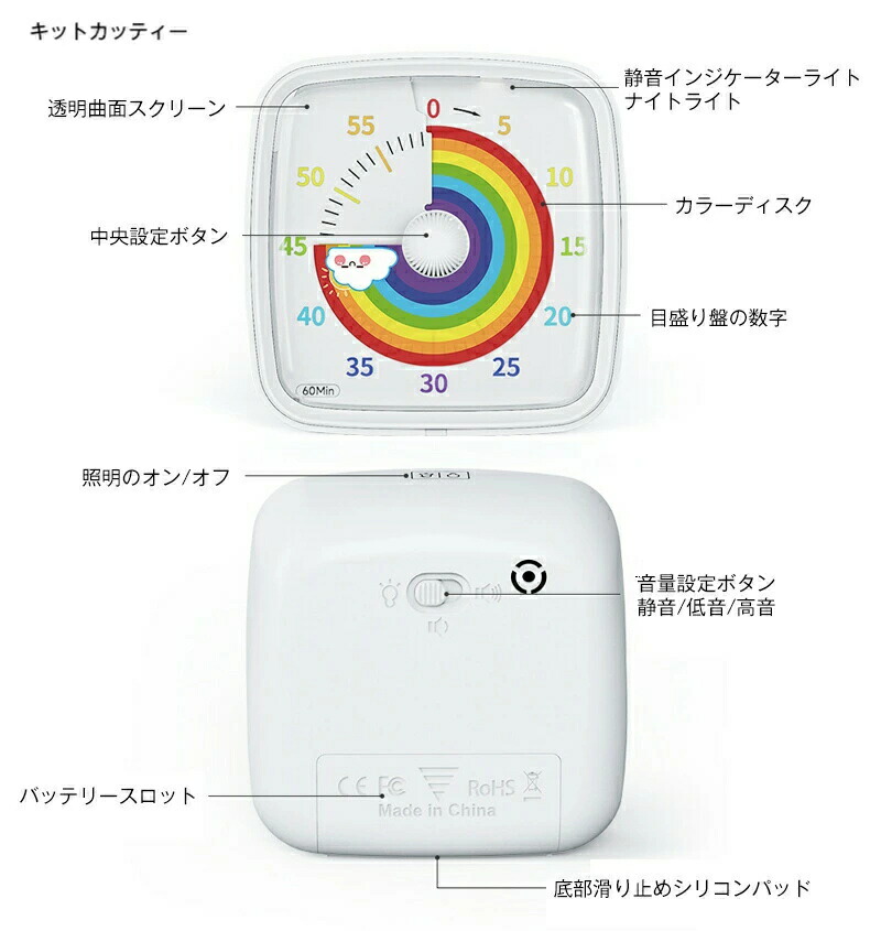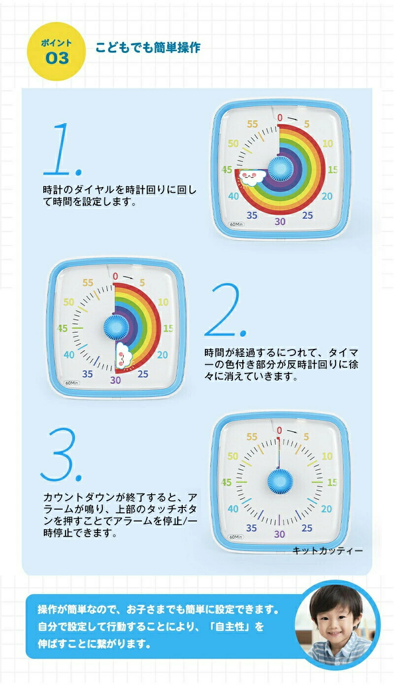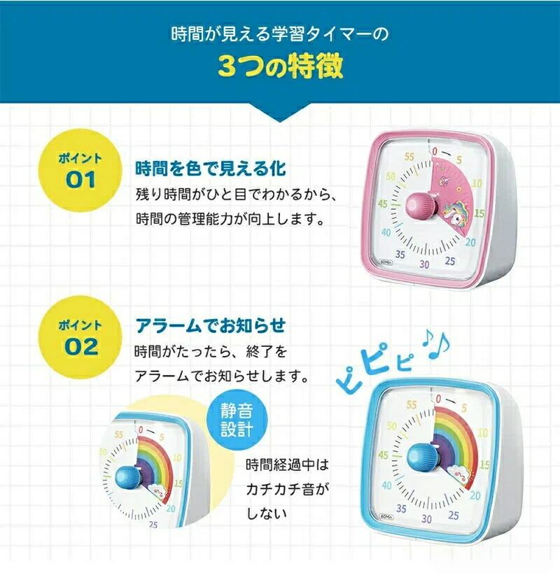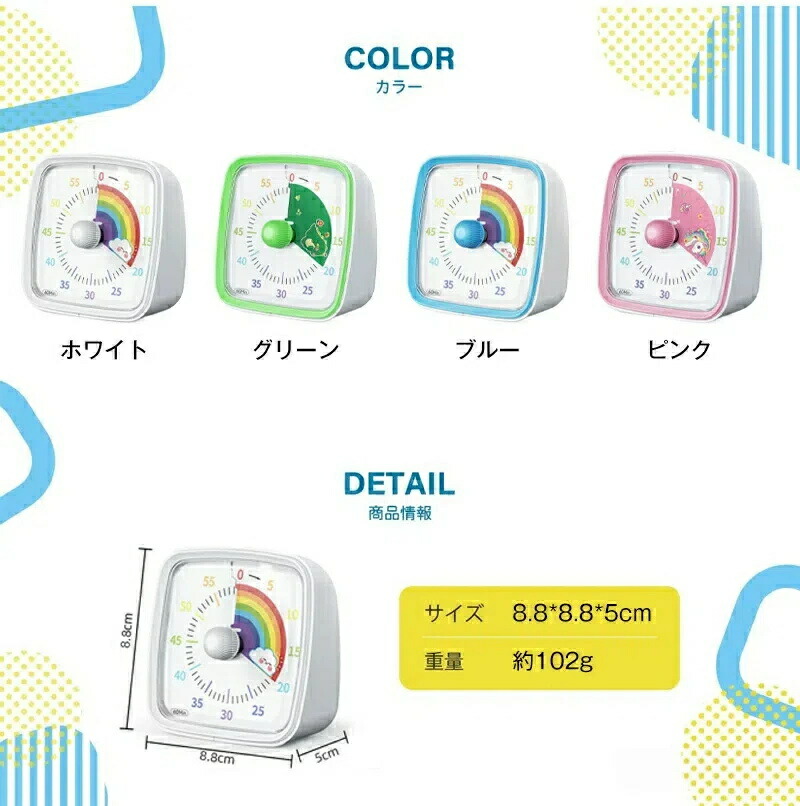 タイマー 子ども 時間管理 学習タイマ キッチン用品 食器 調理器具 超目玉商品 ホワイト ブルー ピンク グリーン