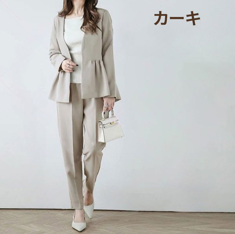 ママスーツ 母 レディース 洗える パ スーツ セットアップ パンツスーツ 通販 S M L カーキ ネイビー