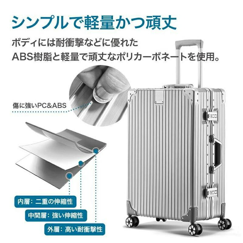 スーツケース アルミ合金のキャリーバー バッグ 小物 ブランド雑貨 特集 S(20インチ) M(24インチ) L(26インチ) LL(28インチ) シルバー ホワイト ブラック