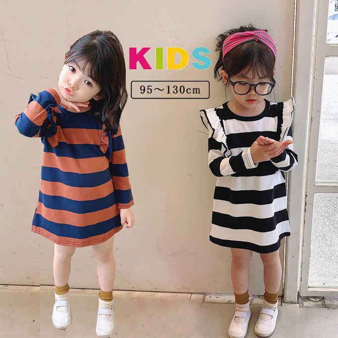 子供服 ワンピース 女の子 長袖 子供 キッズ ベビー マタニティ 豊富 ブラウン ホワイト 7(95-100cm) 9(100-105cm) 11(105-115cm) 13(115-120cm) 15(120-130cm)