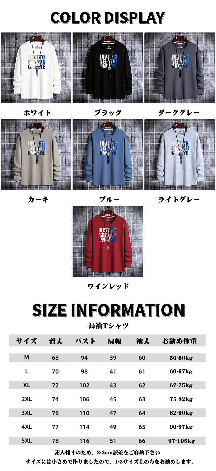 55%OFF Tシャツ メンズ 長袖 メンズファッション 通販 ホワイト ブラック ダークグレー カーキ ブルー ライトグレー ワインレッド M(S相当) L(M相当) XL(L相当) 2XL(L/LL相当) 3XL(LL/3L相当) 4XL(3L/4L相当) 5XL(4L/5L相当)