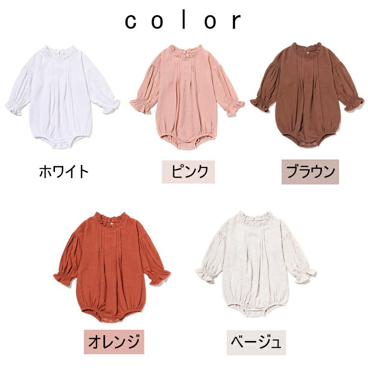 ロンパース 丸襟 長袖 春夏 韓国 ベ キッズ ベビー マタニティ 人気 ホワイト ピンク ブラウン オレンジ ベージュ 59 66 73 80 90