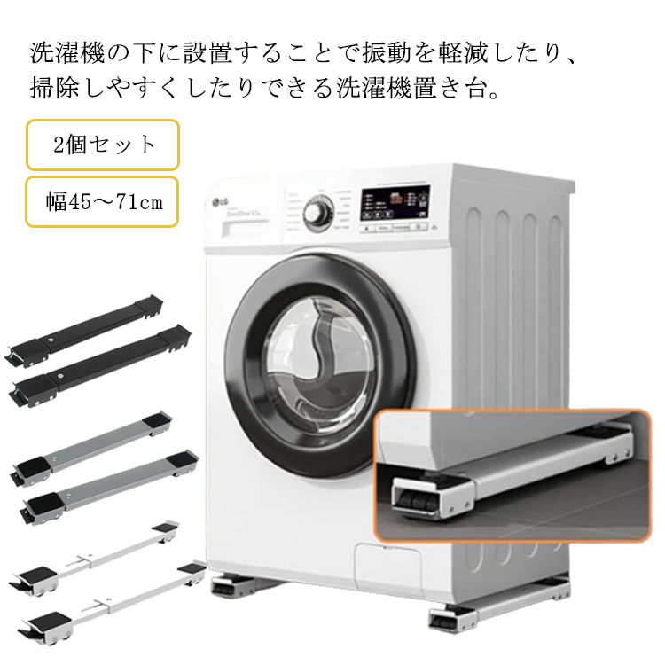 洗濯機 置き台 キャスター付き かさ上 ホワイト(ストッパー付き) ブラック(ストッパー付き) シルバー(ストッパー付き)