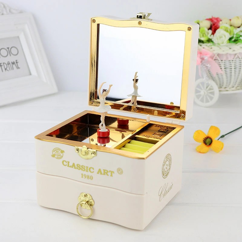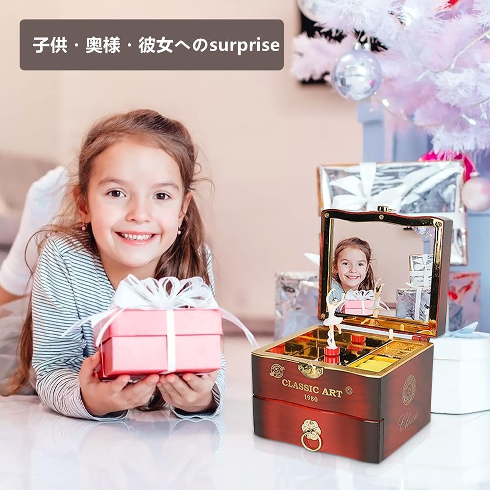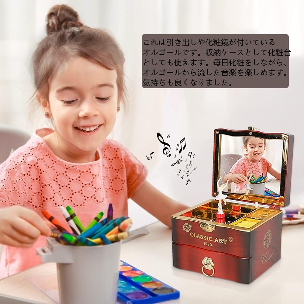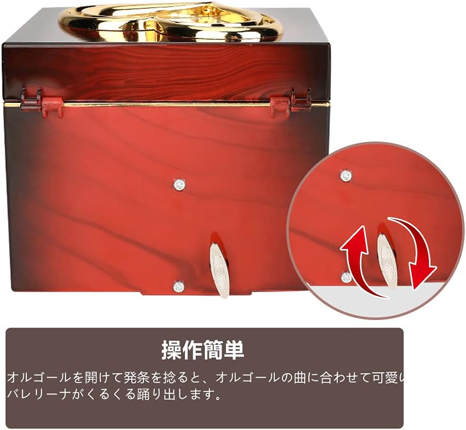 オルゴール 音楽ボックス 回転 引き出 ホワイト レッド