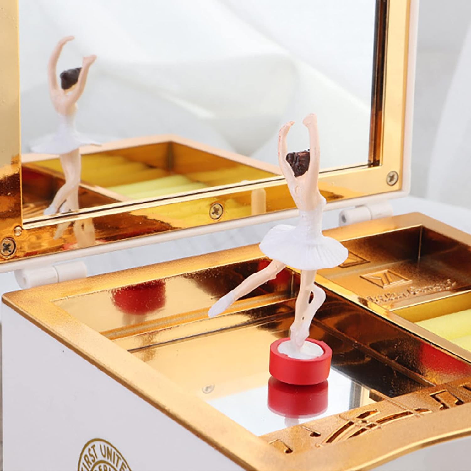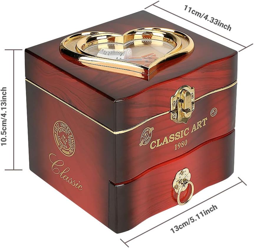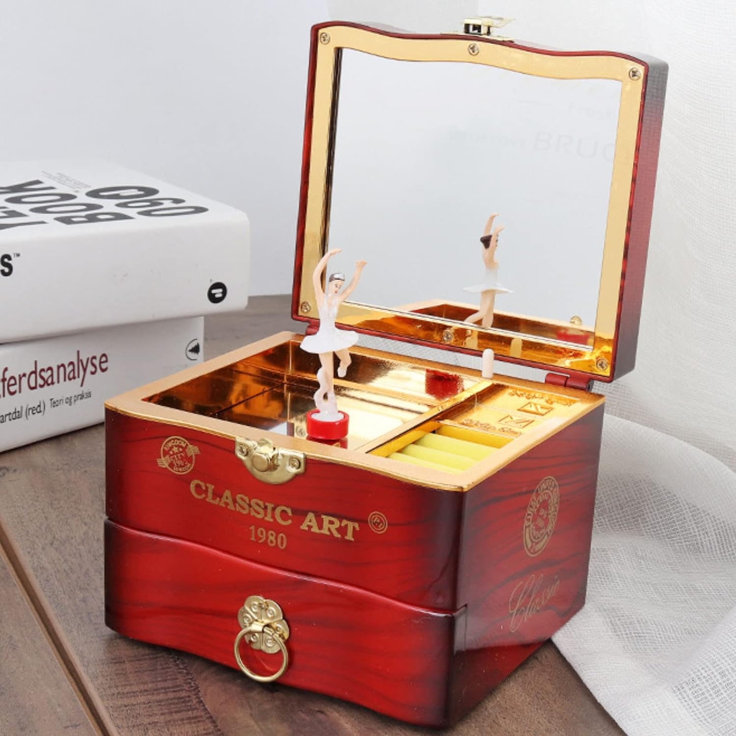 オルゴール 音楽ボックス 回転 引き出 ホワイト レッド