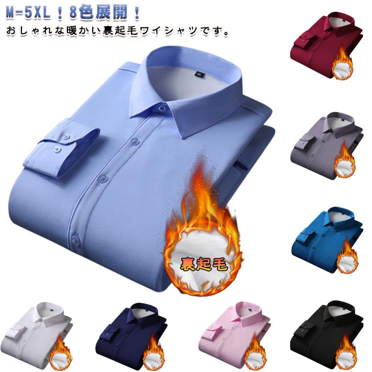 秋 ノーアイロン 暖かい 裏起毛 防寒 トップス ワイシャツ 超目玉商品 ホワイト ネイビー ピンク ブラック ブルー グレー ワインレッド ライトブルー M L XL 2XL 3XL 4XL 5XL