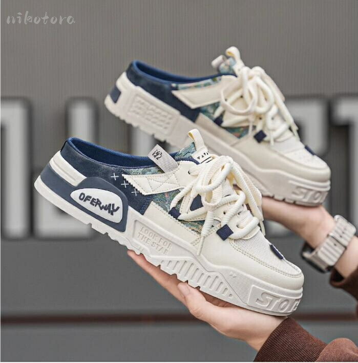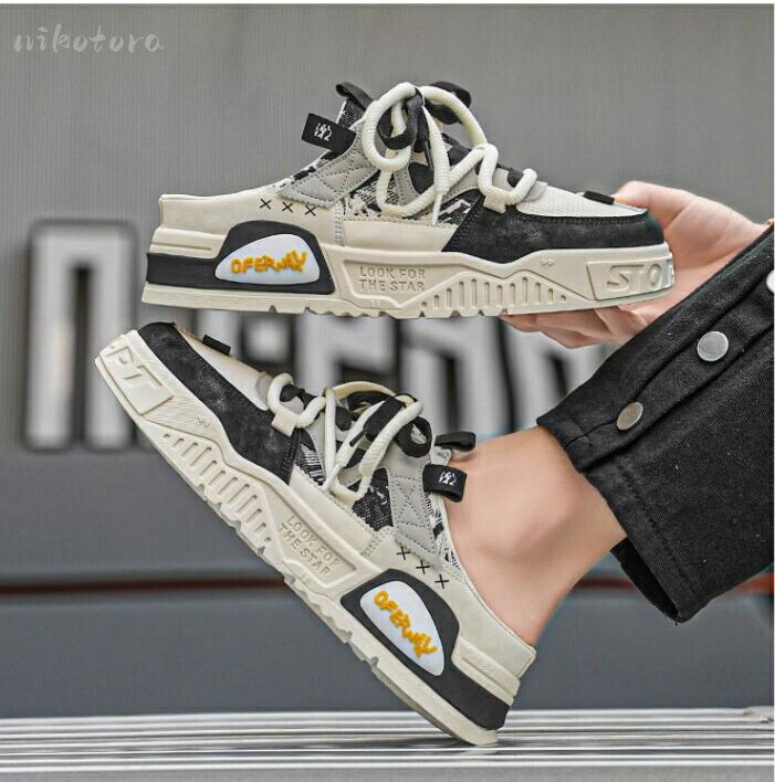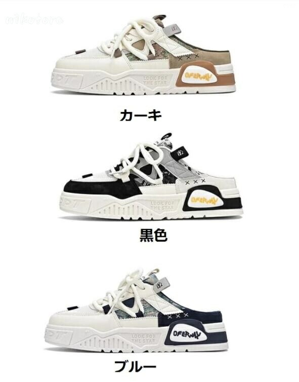 ラウンドトゥ かかとなし スニーカー メンズ靴 サンダル スポーツサンダル 人気 ブルー カーキ 黒色 39=24.5cm 40=25.0cm 41=25.5cm 42=26.0cm 43=26.5cm 44=27.0cm