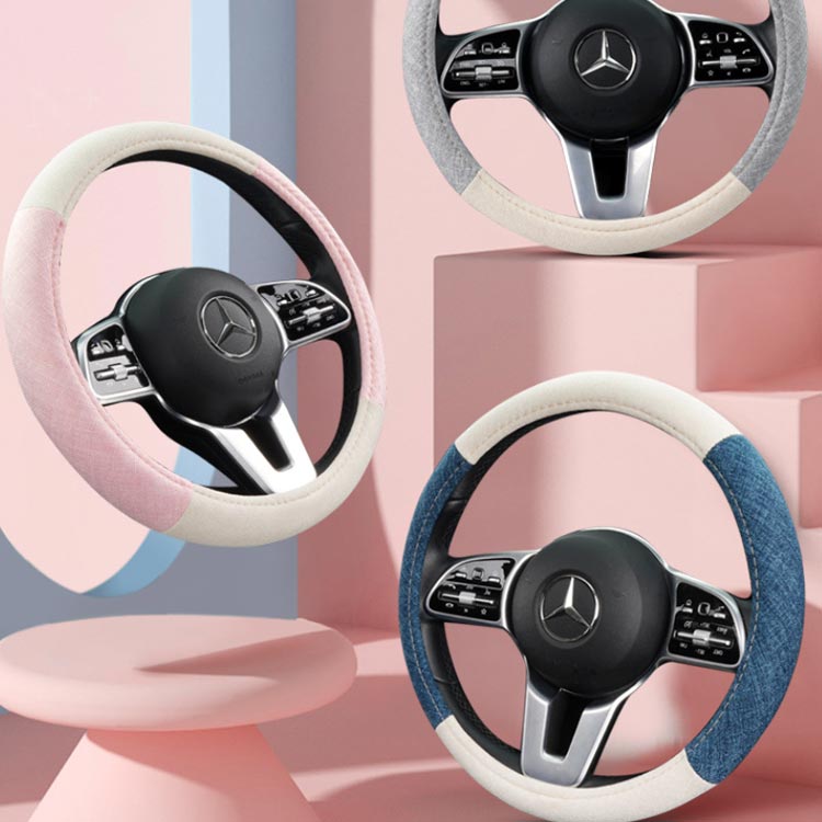 模様替え 乗用車用 バイカラー 綿麻 ブルー×ベージュ グレー×ベージュ ピンク×ベージュ ブラウン×ベージュ ブルー×グレー ブラック×ピンク ブラック×ベージュ 38cm(D型) 38cm(O型)