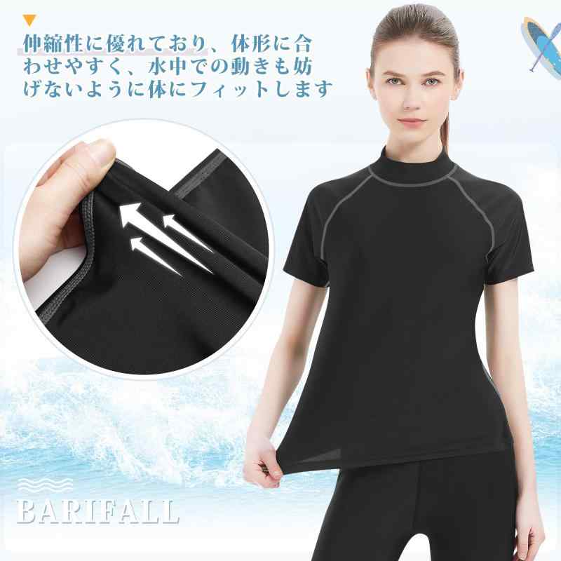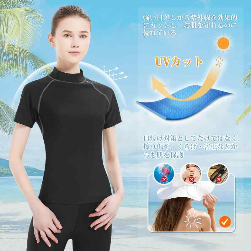 [] ラッシュガード レディース 半袖 ハイネック 水着 スイムウェア UVカット 吸汗速乾 接触冷感 水陸両用
