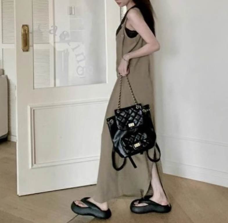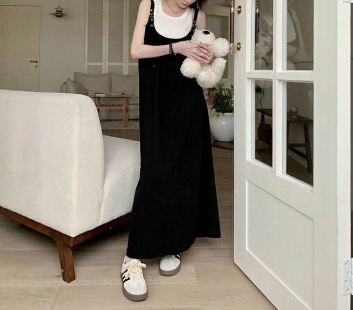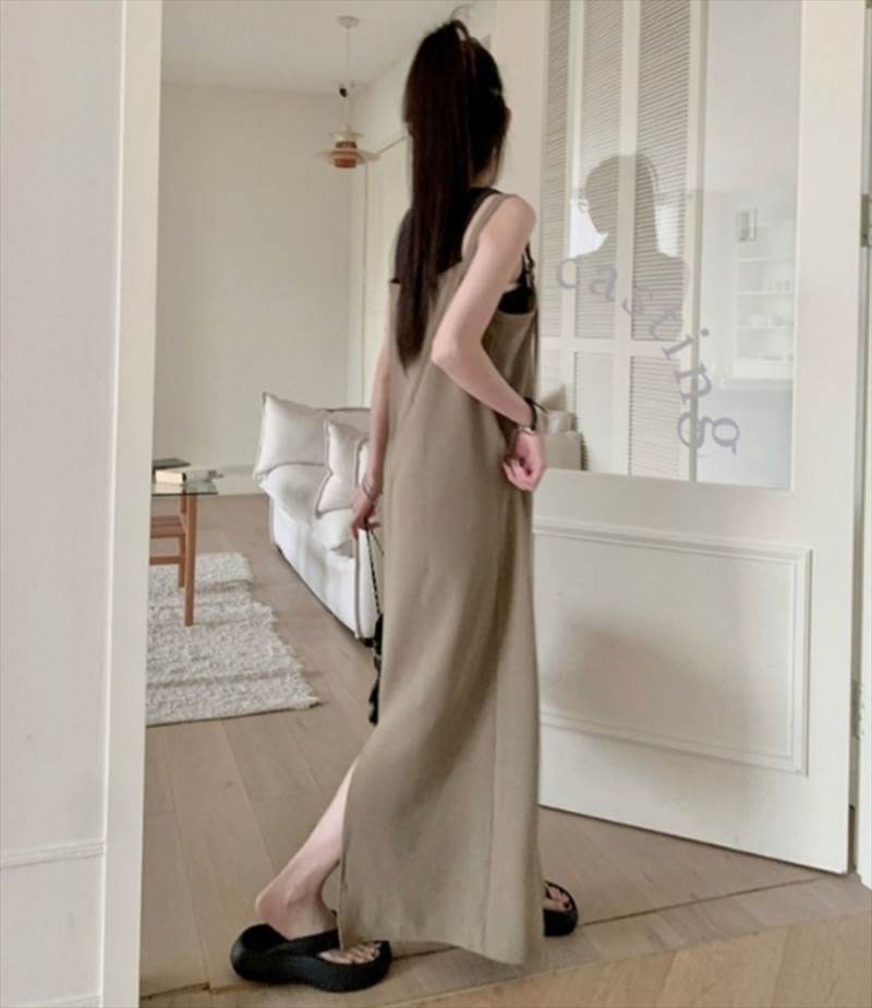 大人気のセットアップタンクトップとキャミソールワンピースの2点セットが登場しました!シンプルながらもおしゃれなデザインで、どんなコーディネートにも合わせやすいアイテムです。ノースリーブのタンクトップとロング丈のキャミソールワンピースの組み合わせは、重ね着スタイルにもぴったり。バックスリットがさりげないアクセントになっています。