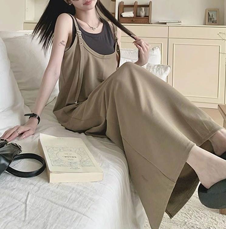 セットアップ タンクトップ キャミソールワンピース 2点セット レディース トップス ワンピース インナー ロング マキシ ノースリーブ ラウンドネック ベルト バックスリット 綿 麻 かわいい 大人可愛い シンプル カジュアル おしゃれ ルーズ 無地 春 夏 秋 ママ マタニティ 通勤 学生 学校 通学 デート お出かけ 旅行 女子会 休日 重ね着 楽ちん 体型カバー 普段使い 着回し M L XL 2XL 3XL 4XL 大きいサイズ ゆったり 白 ホワイト 黒 ブラック 茶色 ブラウン グレー