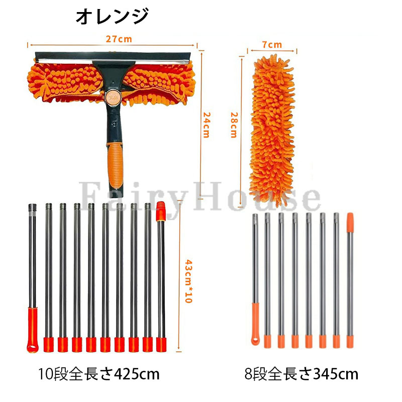 6%OFFクーポン 窓拭きツール 高所 日用品雑貨 文房具 手芸 豊富 オレンジ ブルー グレー ダークブルー グリーン レッド ローズレッド 10段ポール 8段ポール