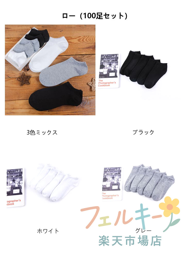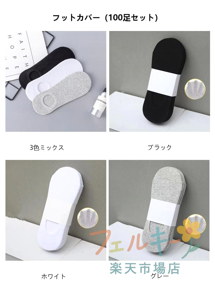 全品対象クーポン発行/ 使い捨て靴下 インナー 下着 ナイトウエア 特集 3色ミックス ブラック ホワイト グレー ハイ(100足セット) ロー(100足セット) フットカバー(100足セット)