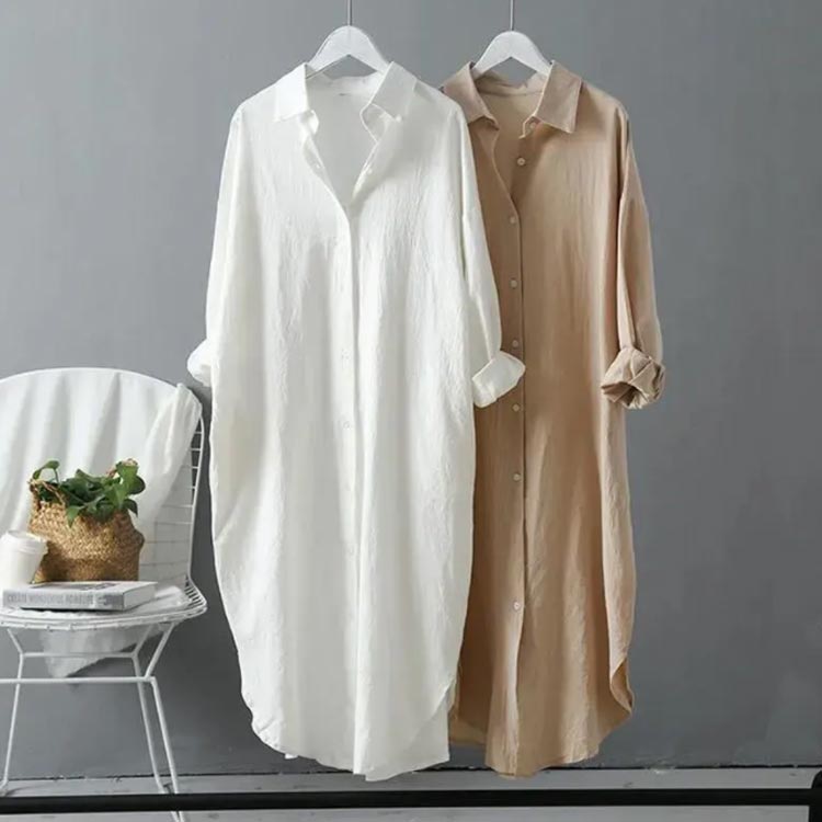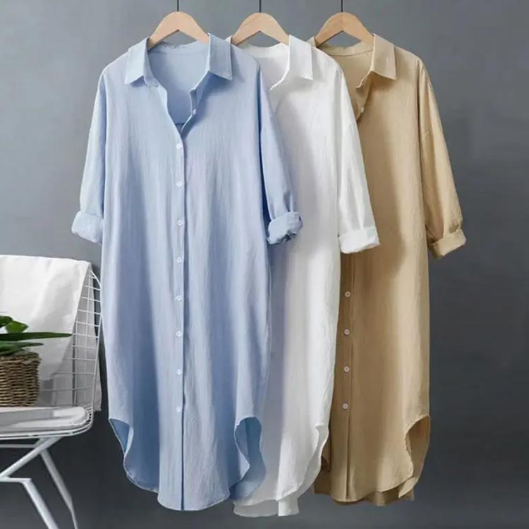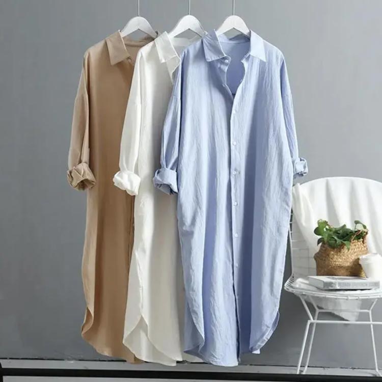 ゆったり ロングシャツ レディース 長 レディースファッション 続々登場 ホワイト ブルー ベージュ S M L XL 2XL