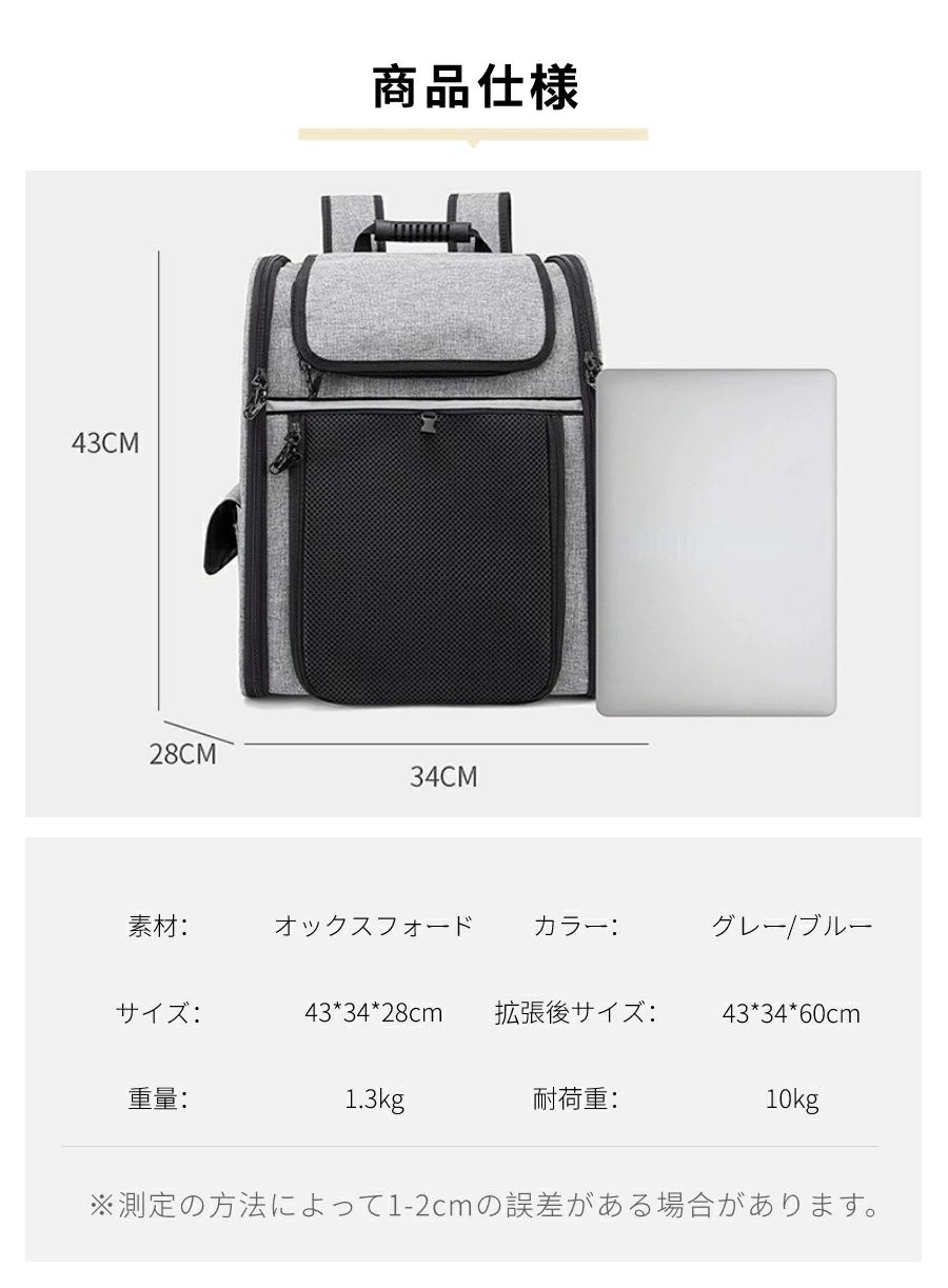 ペット キャリーバッグ 拡張 10キロ ペット ペットグッズ 早い者勝ち グレー ブルー