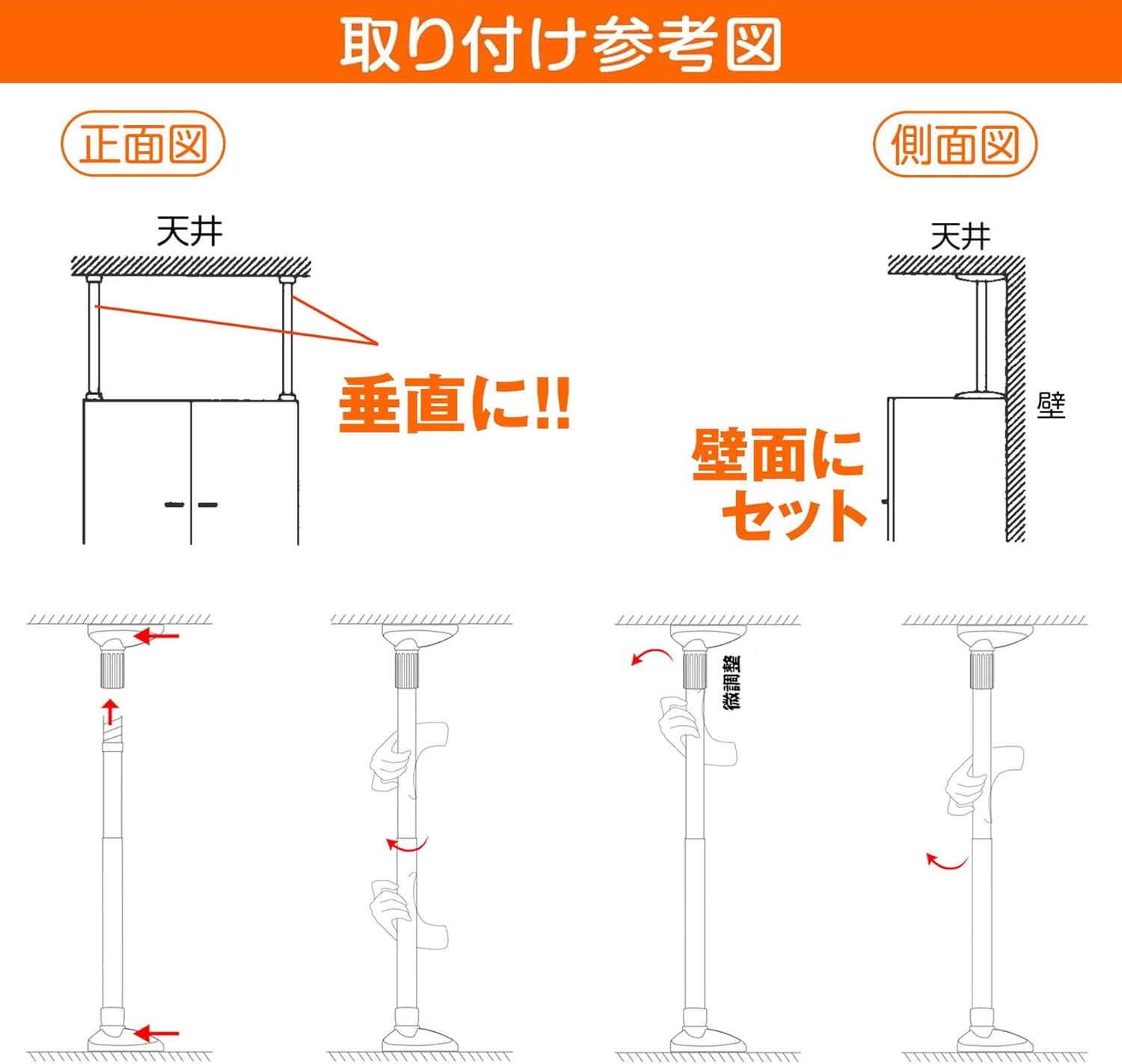 【地震 転倒防止】: 家具の転倒を防止し、万一の地震時に被害を軽減する防災用品。天井と家具のすき間を強力に圧着固定。引き出し、テーブル、ドレッサー、ベッドサイドテーブル、棚、冷蔵庫、本棚、キャビネット、その他の場所で広く使用できます。 地震発生時に家具の転倒を防ぎ、被害を最小限に抑える防災グッズです。