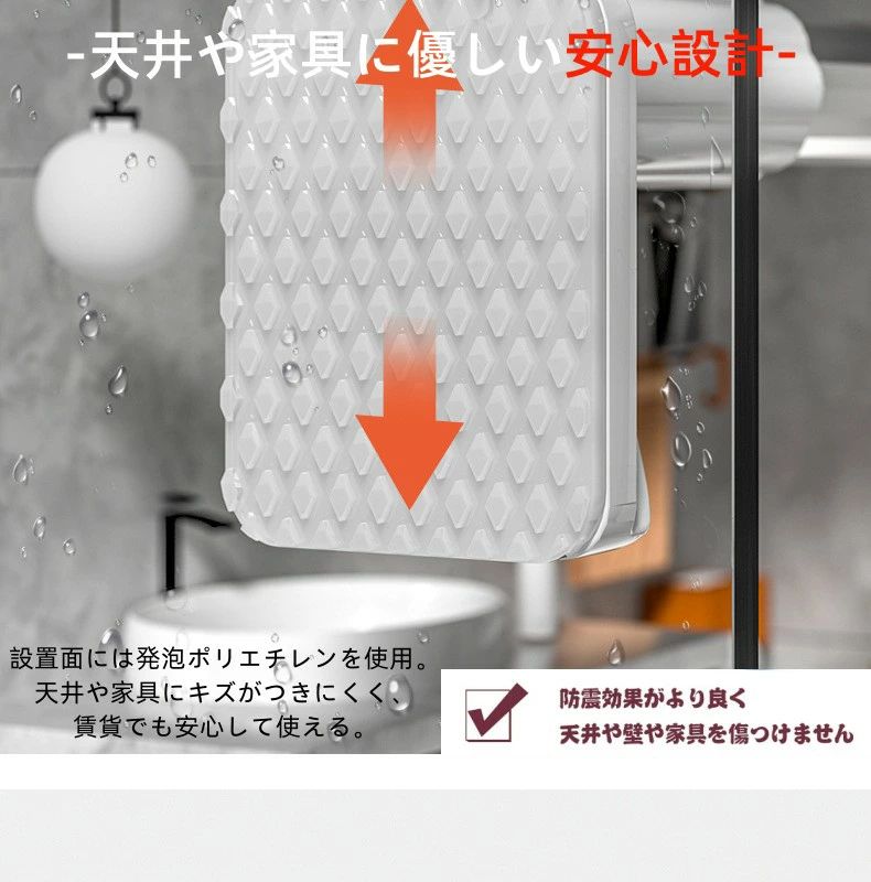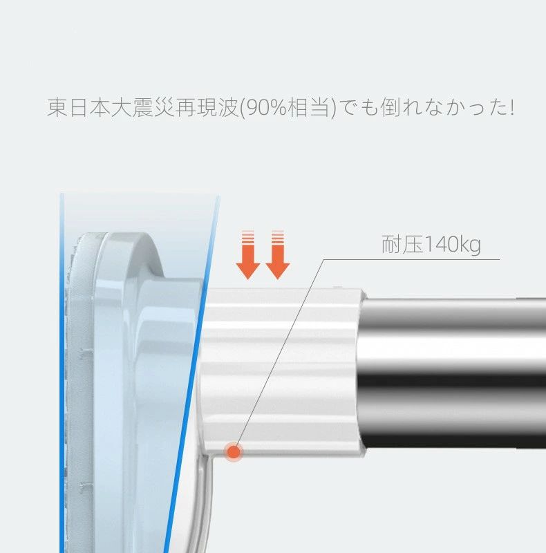 【転倒防止グッズ】: 高分子合成樹脂とステンレス鋼で構成、家具との設置面は、高密度のウレタン素材を使用、防水・防湿、耐食性。地震が発生した場合、当社の家具転倒防止 突っ張り棒で家具をしっかりと固定します。
