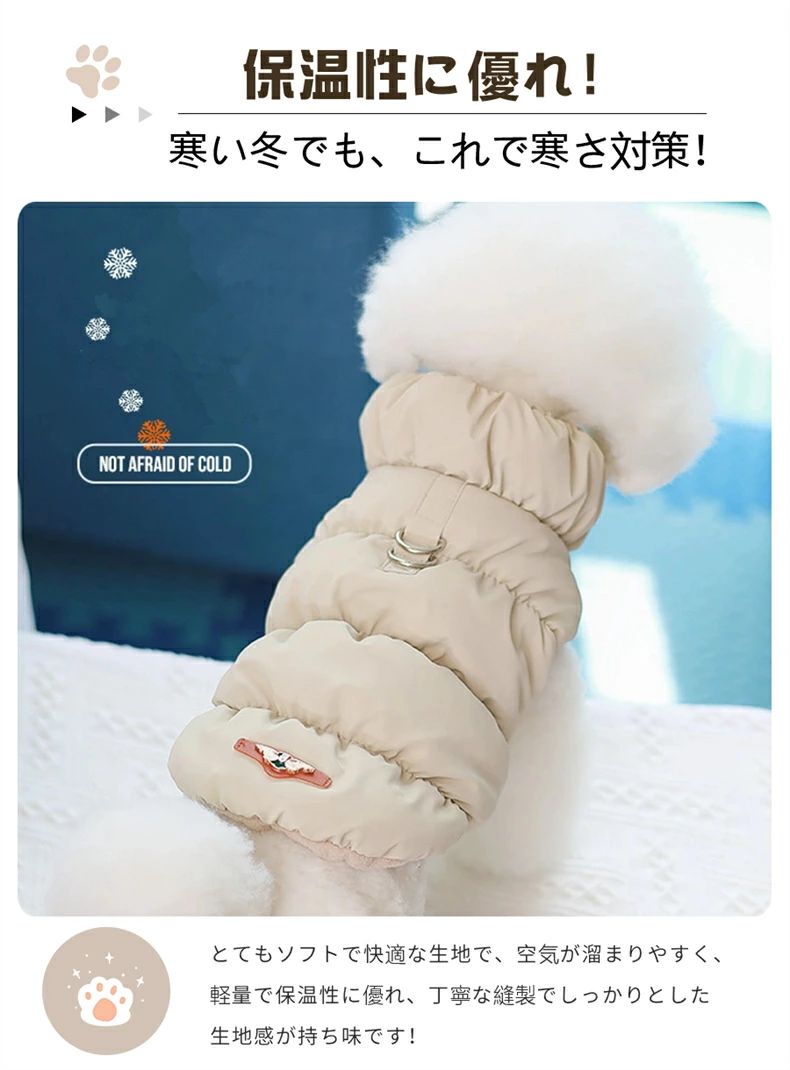 犬 服 ダウン ハーネス ドッグウェア ダウン風 ダウンジャケット Dカン付 犬の服 犬用洋服 袖なし ペット 前開き ペット服 ウェア 洋服 防寒 ボア 猫 裏起毛 防寒着 秋冬 あっ あったか