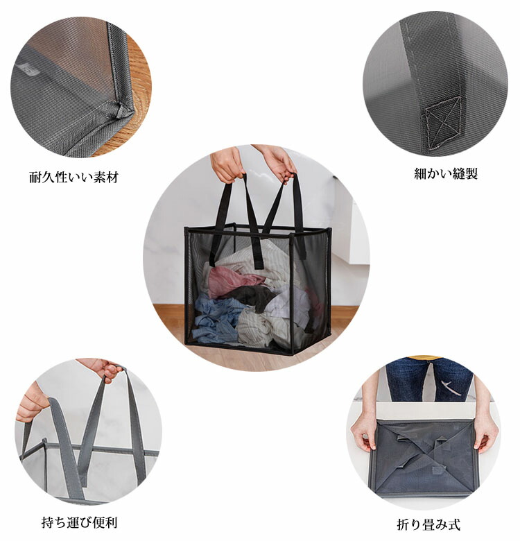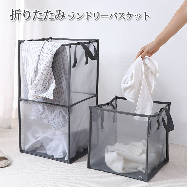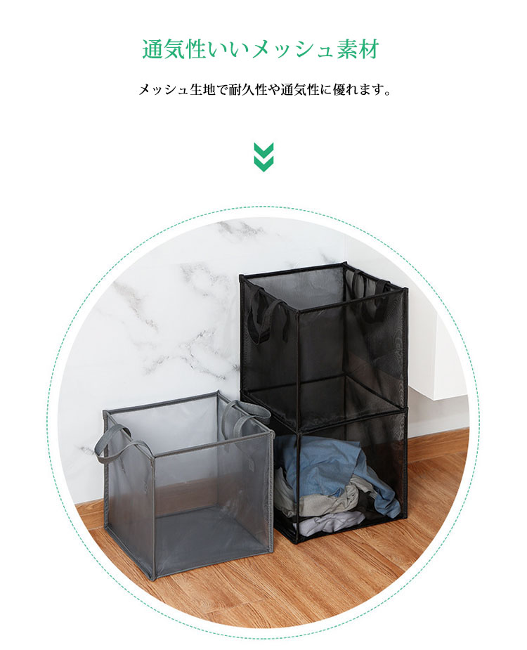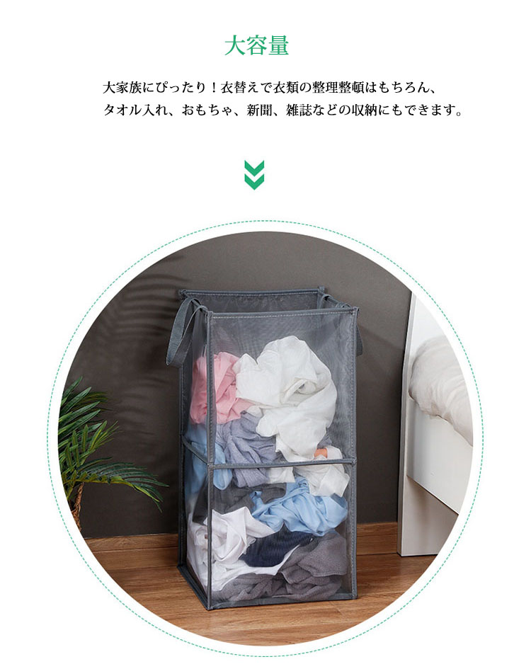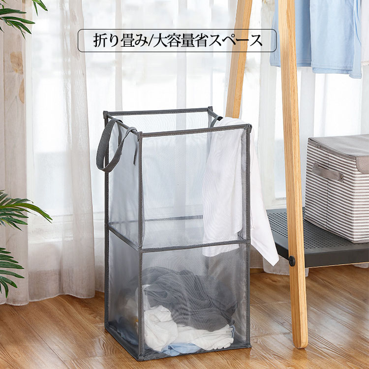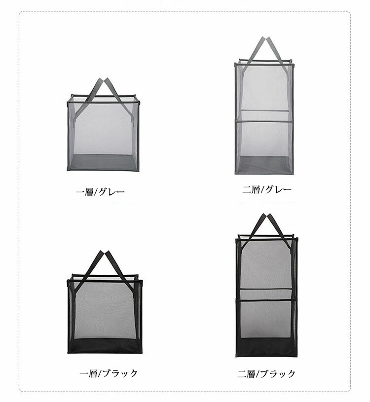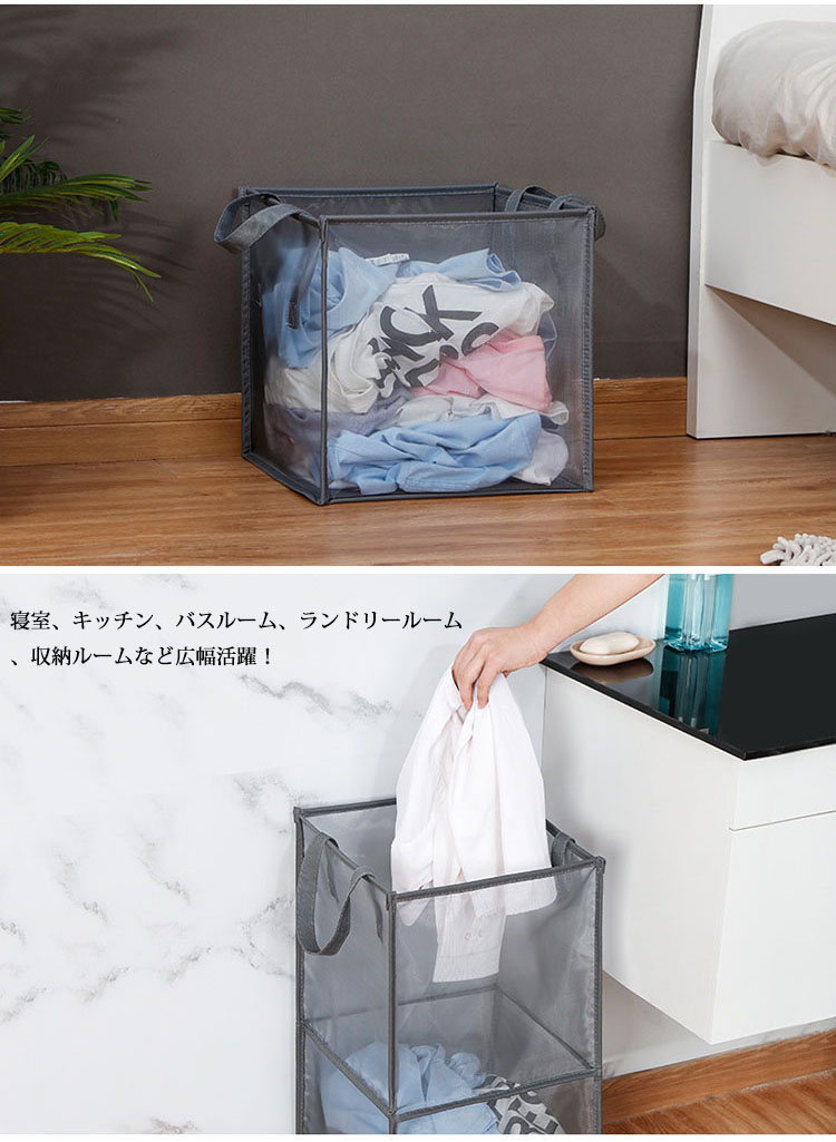 折りたたみ ランドリーバスケット 洗濯 1層 グレー 1層 ブラック 2層 グレー 2層 ブラック