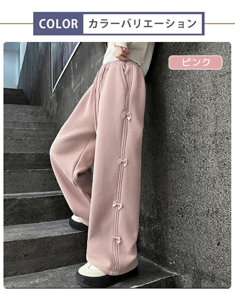 キッズ パンツ ワイドパンツ リボン キッズ ベビー マタニティ 続々入荷中 ピンク グレー 120 130 140 150 160 170