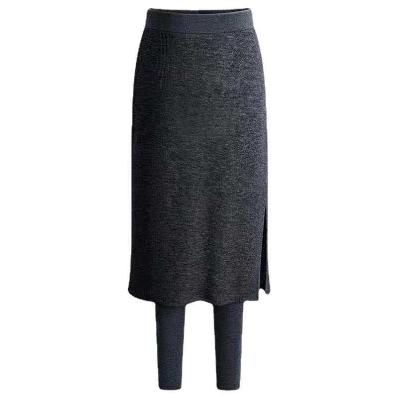 フェイクレイヤード レギンスドッキング ナロースカート レディース スカート ボトムス 膝丈 膝下 ミモレ 9分丈 ミディアム丈 Iライン ハイウエスト ウエストゴム 厚手 裏起毛 伸縮性 シンプル カジュアル 上品 おしゃれ こなれ感 ベーシック セレカジ風 無地 秋 冬 防寒 暖かい ママ 女の子 学生 学校 通学 デート お出かけ 女子会 休日 カフェ 体型カバー 脚長 プチプラ 普段使い 着回し M L XL 2XL 3XL 4XL 大きいサイズ すっきり ブラック ライトグレー ダークグレー