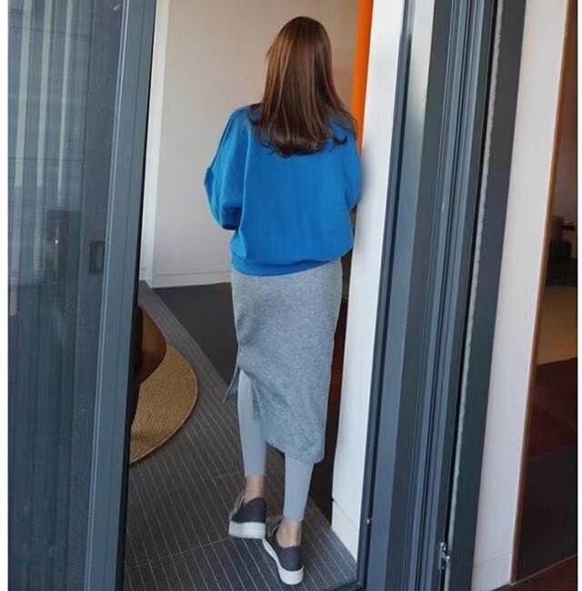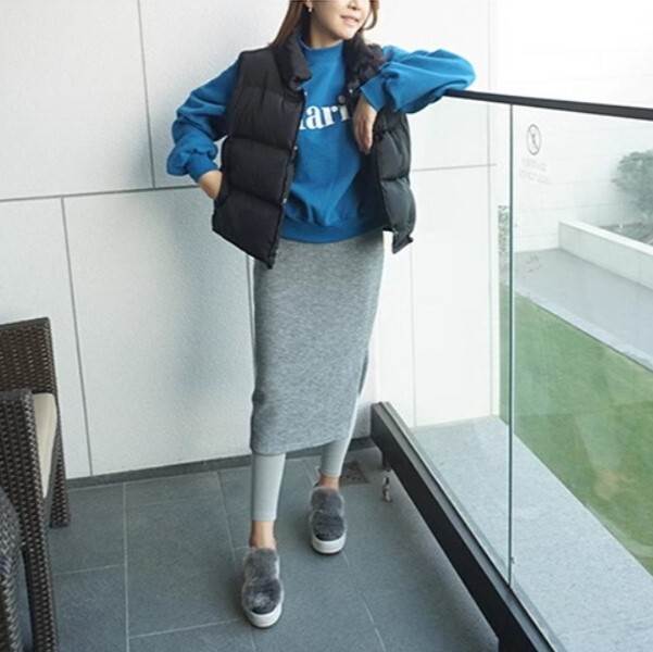 フェイクレイヤード レギンスドッキング ナロースカート レディース スカート ボトムス 膝丈 膝下 ミモレ 9分丈 ミディアム丈 Iライン ハイウエスト ウエストゴム 裏起毛 伸縮性 シンプル 厚手