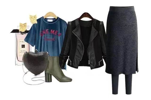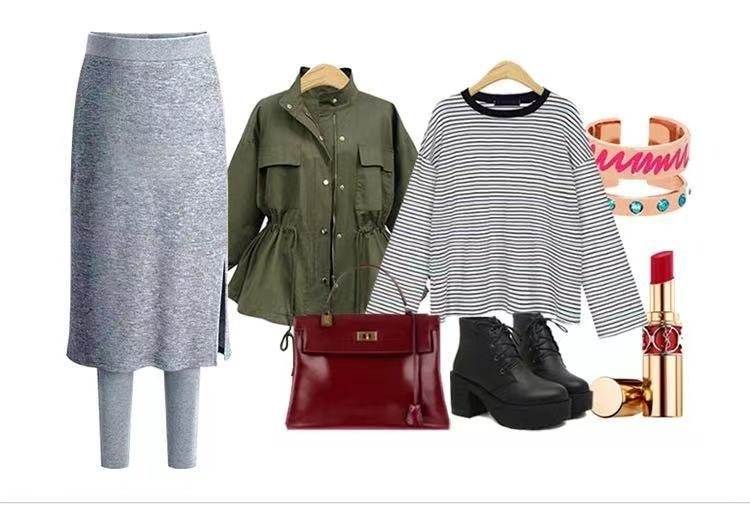 フェイクレイヤード レギンスドッキング ボトムス スカート 人気 ライトグレー ダークグレー ブラック M L XL 2XL 3XL 4XL