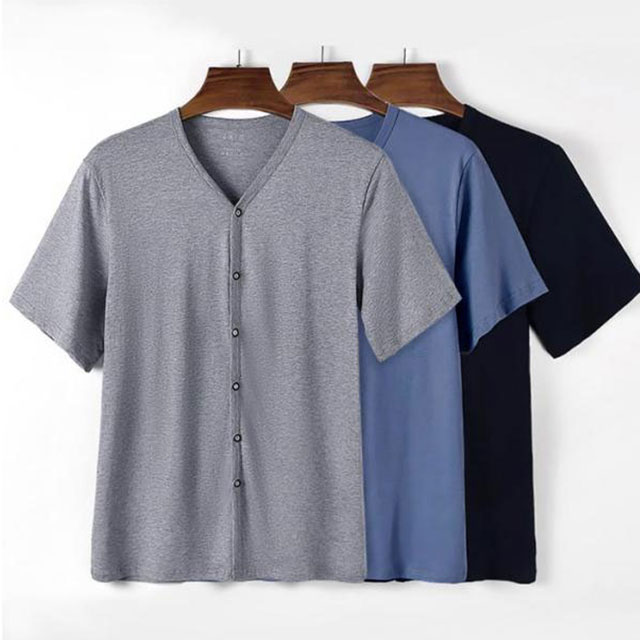 メンズ 前開き 半袖 無地 ルームウェ ネイビー グレー ブルー ホワイト L XL 2XL 3XL 4XL