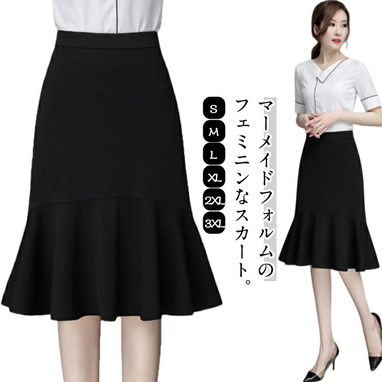 スカート マーメイド ブラック フリル レディースファッション 人気 S M L XL 2XL 3XL